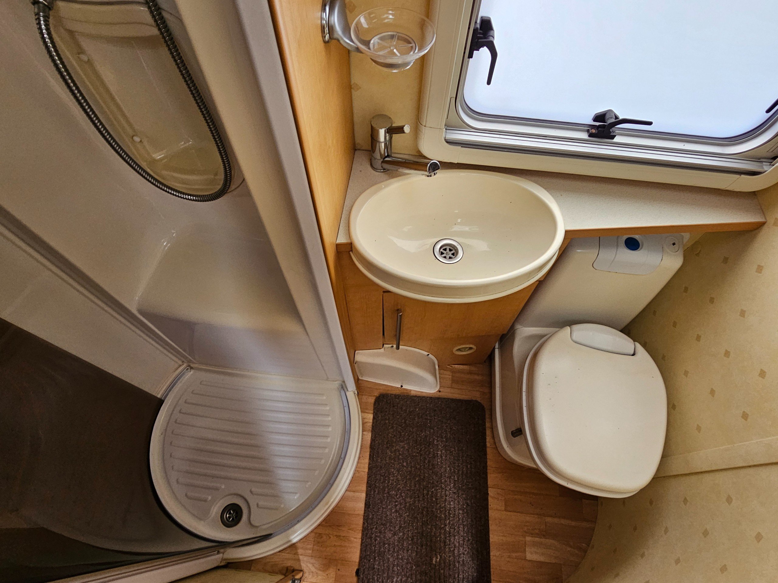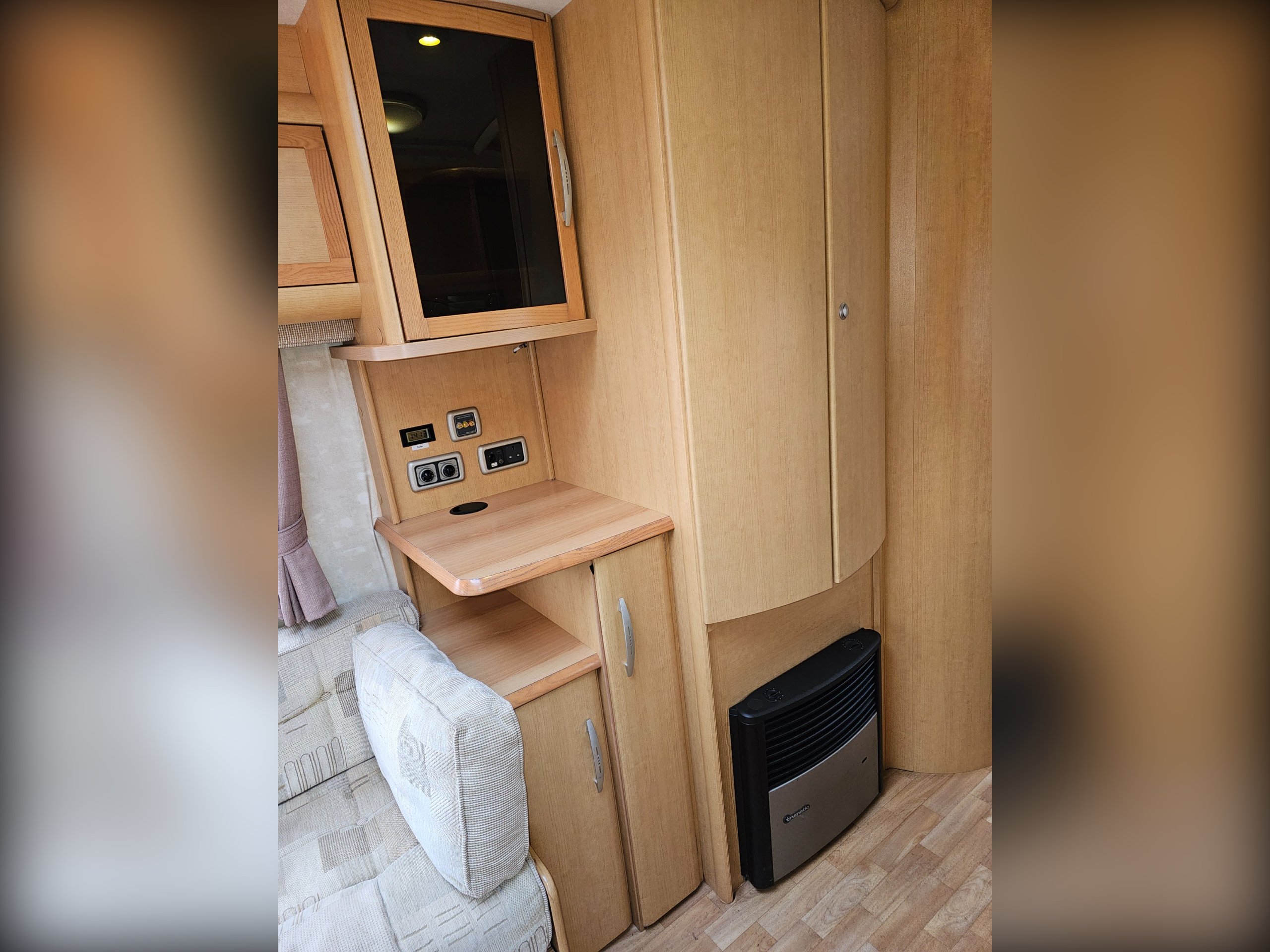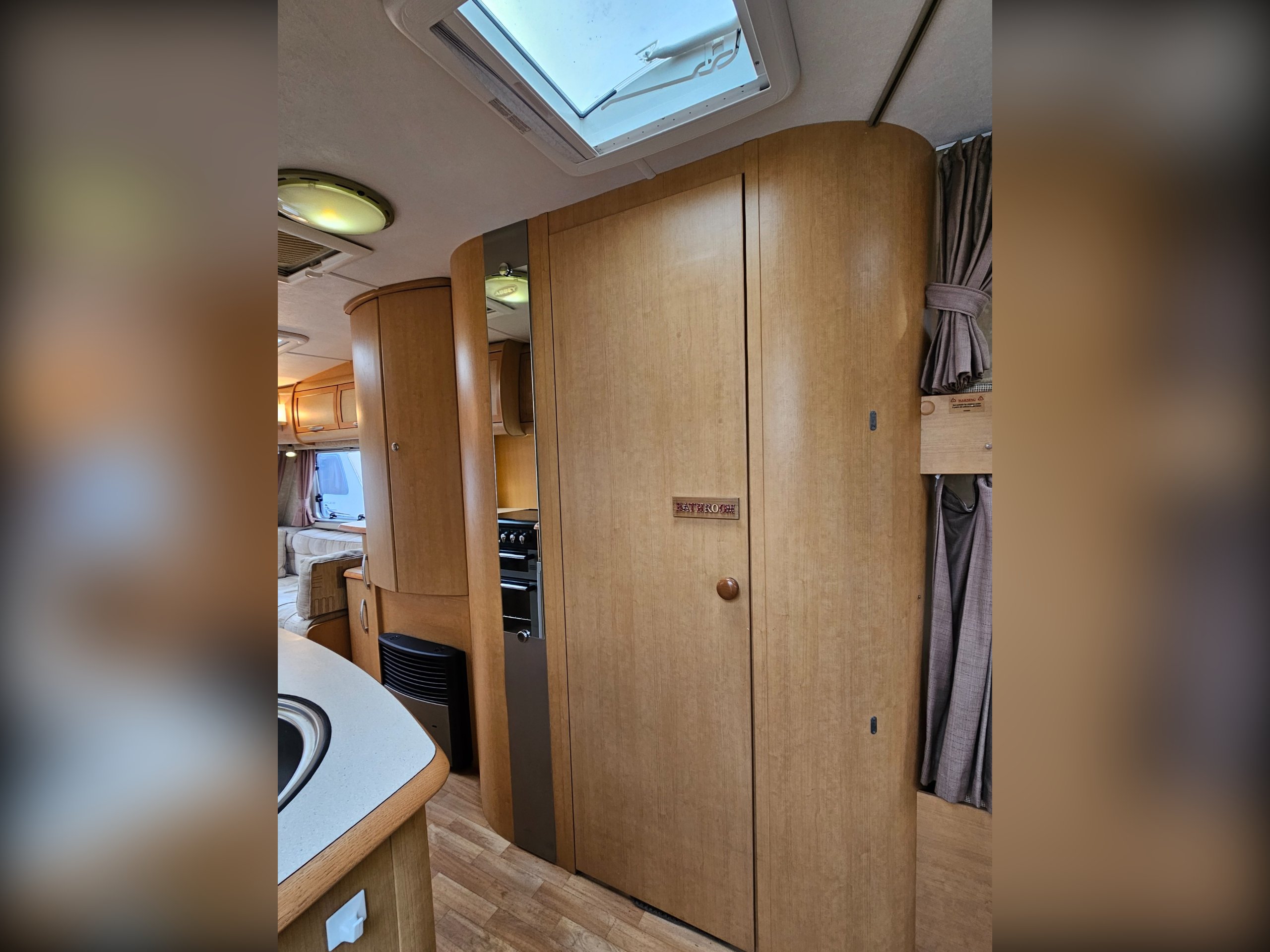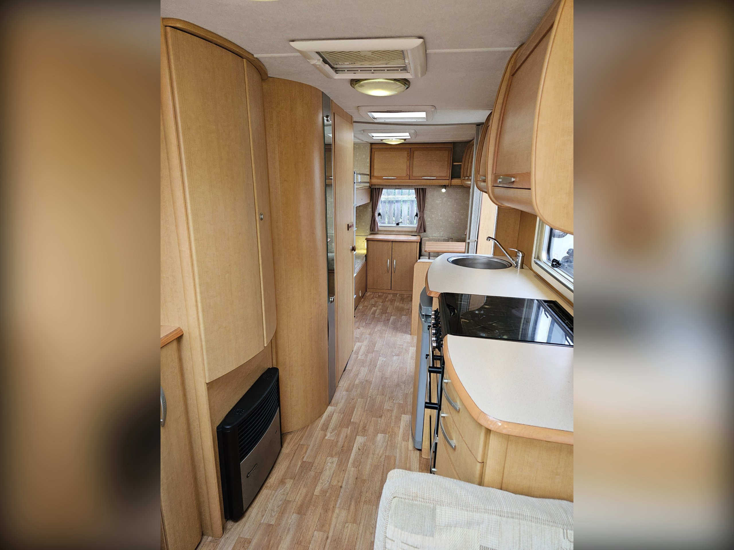 The centre kitchen offers a full cooker (4 ring hob, grill, oven), sink and 3-way fridge. There is also space to fit a microwave. The centre washroom includes a cassette toilet, hand basin and separate shower.