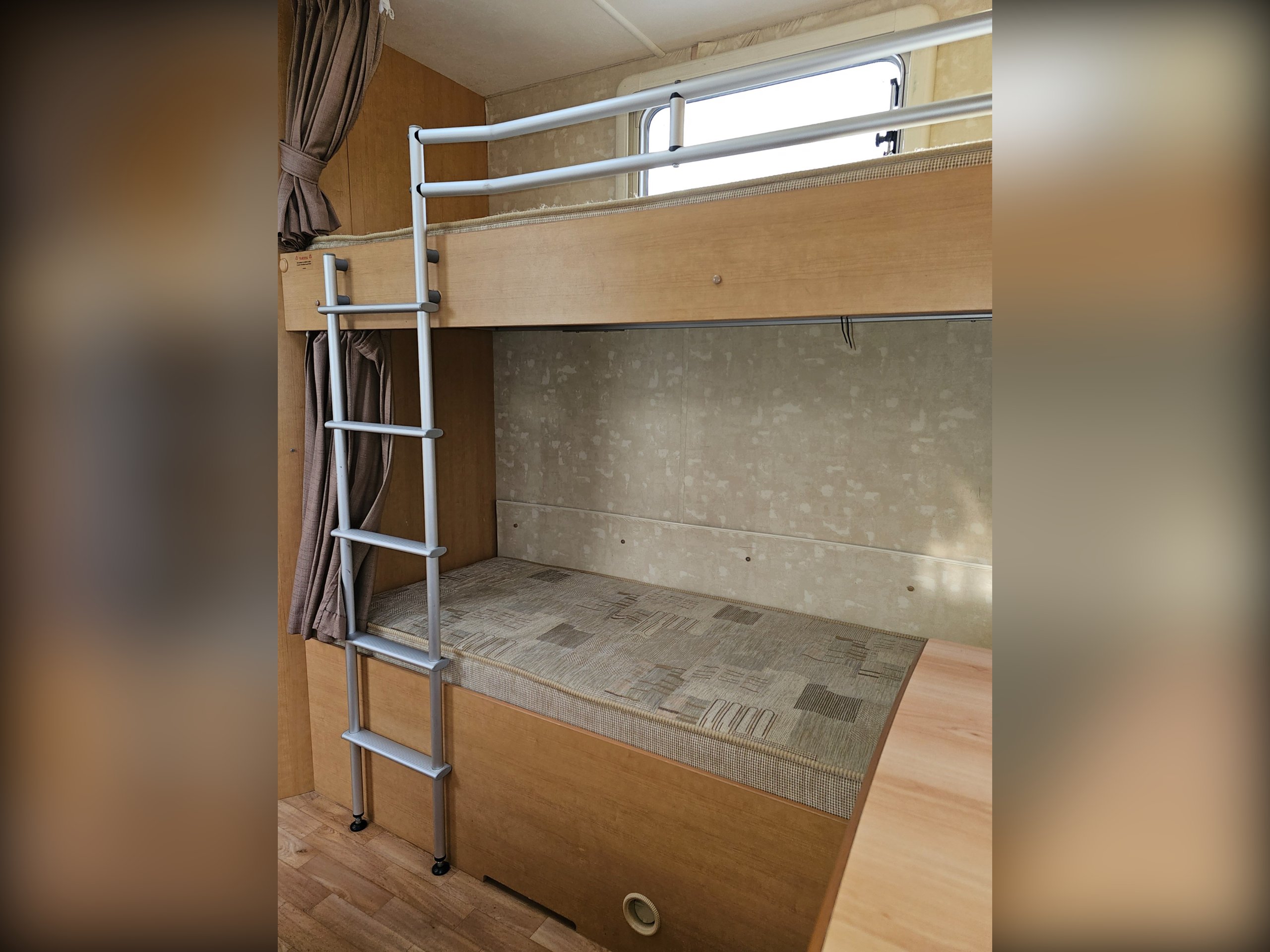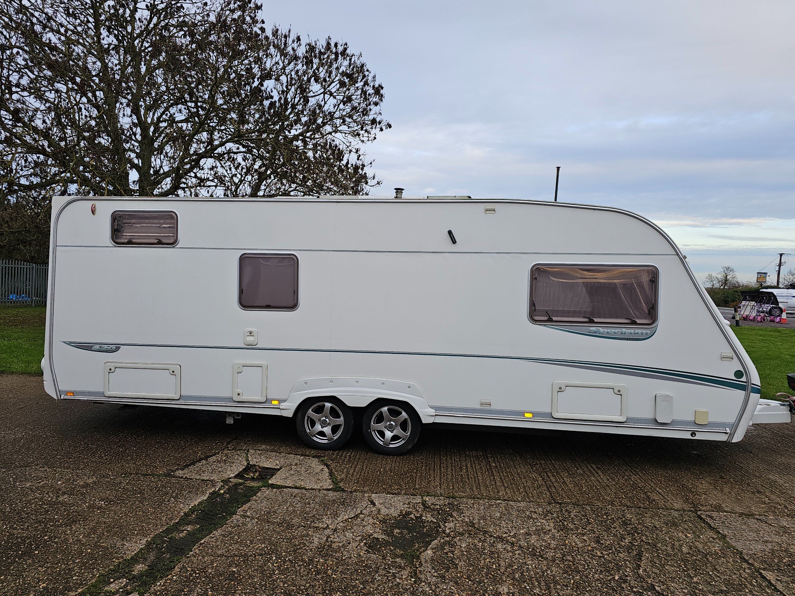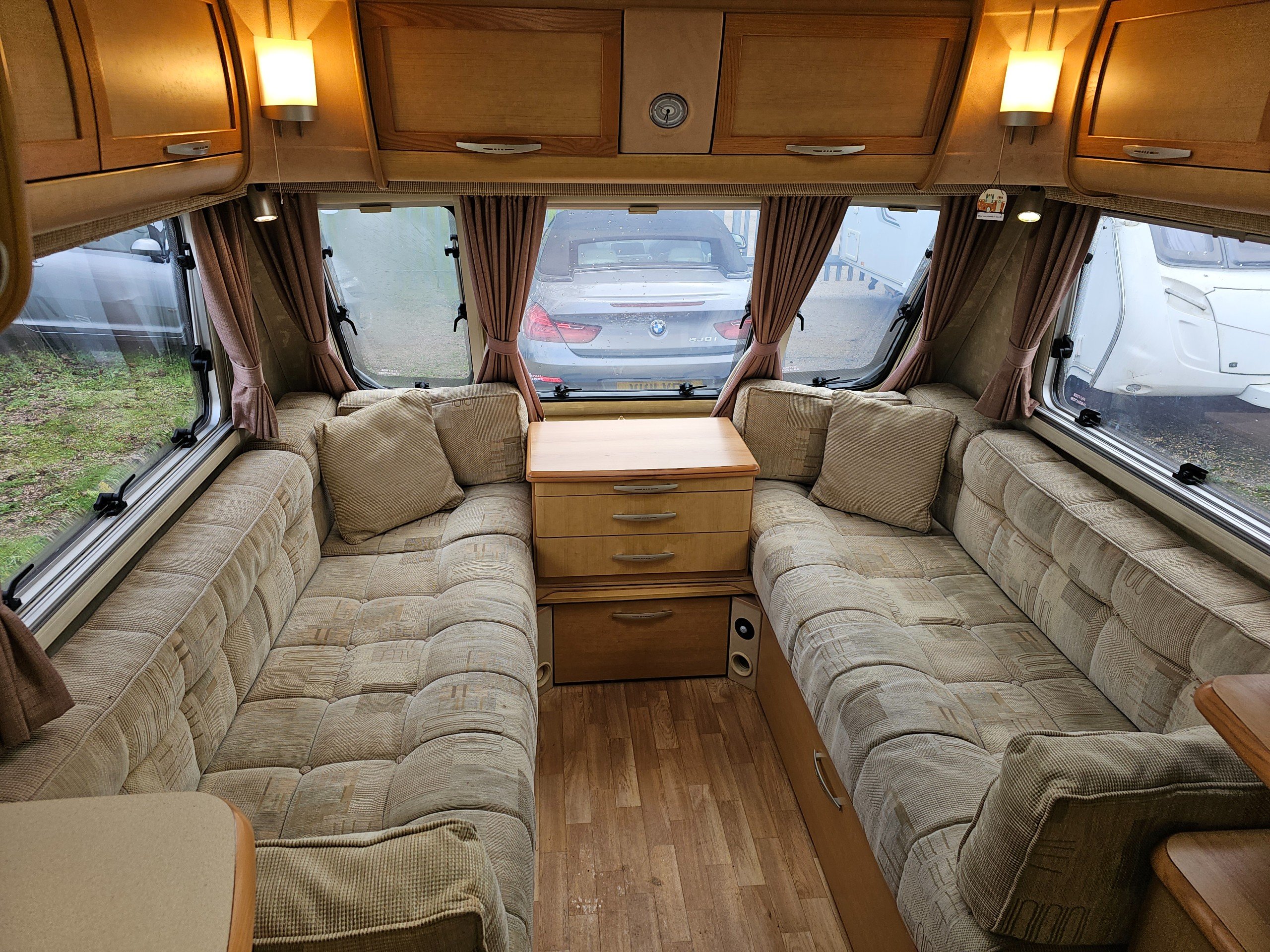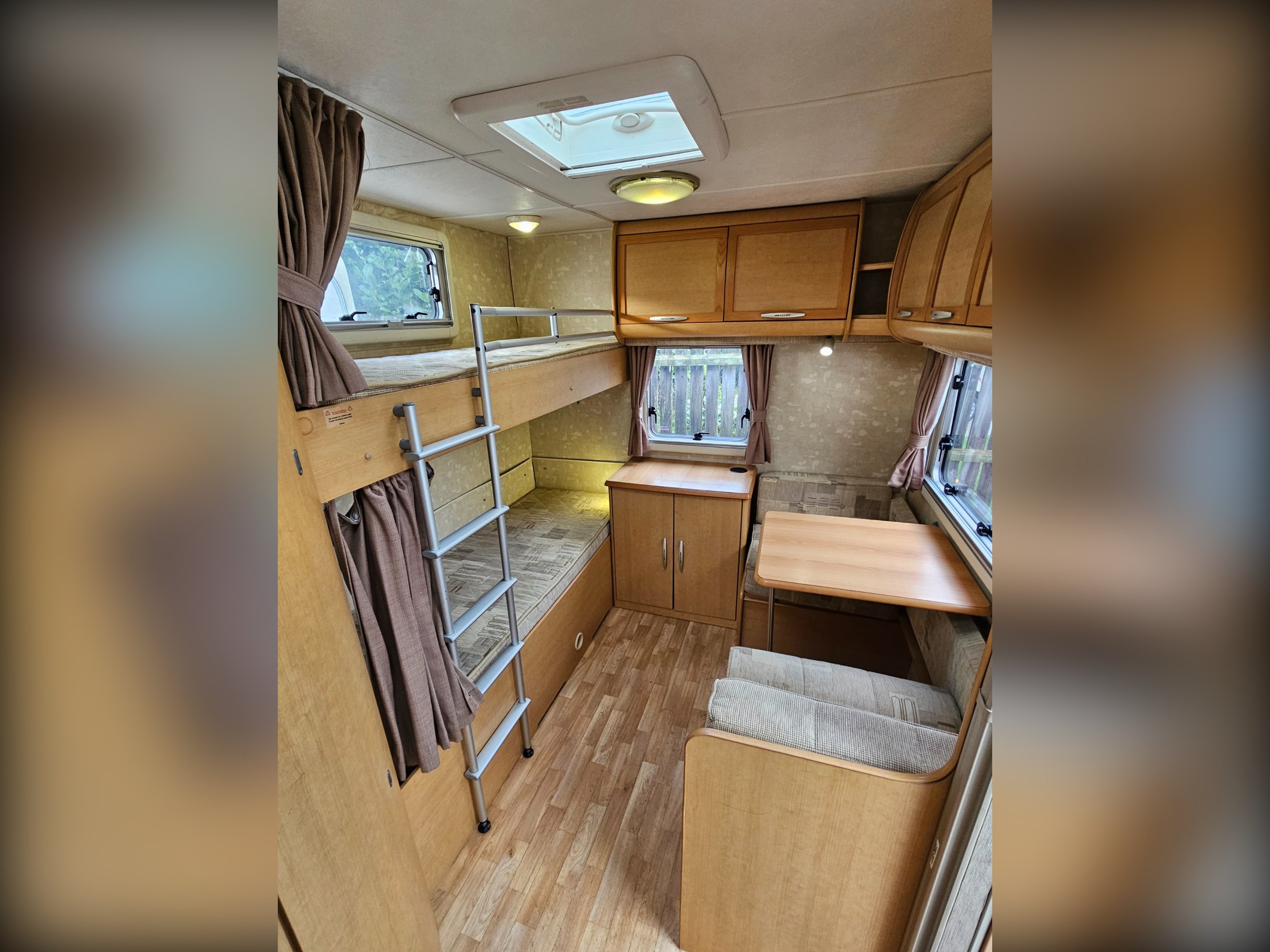 This 2006 6 berth Abbey Spectrum 620 is a top of the range twin axle touring caravan with a really great family layout. The front lounge can convert to a double bed, and the kids can have the rear of the caravan as their own private area (this area has 2 fixed bunk beds and a seating area with the option of making up another 2 bunk beds).